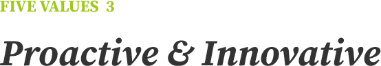 Of our Five Values, I believe that “Customer First” is extremely well established, and the basic policy of our company aims for “Customer-Oriented Business Initiative.” I believe that Speed & Quality are required to achieve our values of Proactive & Innovative and Customer First.