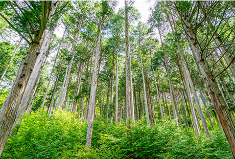 composed of Japanese cypress, cedar, and Sawara cypress. The natural forest consists