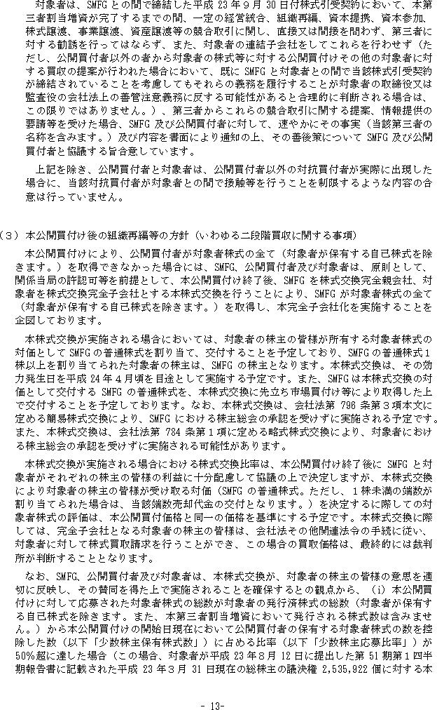 三井住友銀行によるプロミスに対する公開買付けの開始及び三井住友フィナンシャルグループ又は三井住友銀行によるプロミスの第三者割当増資の引受けのお知らせ(13/35)