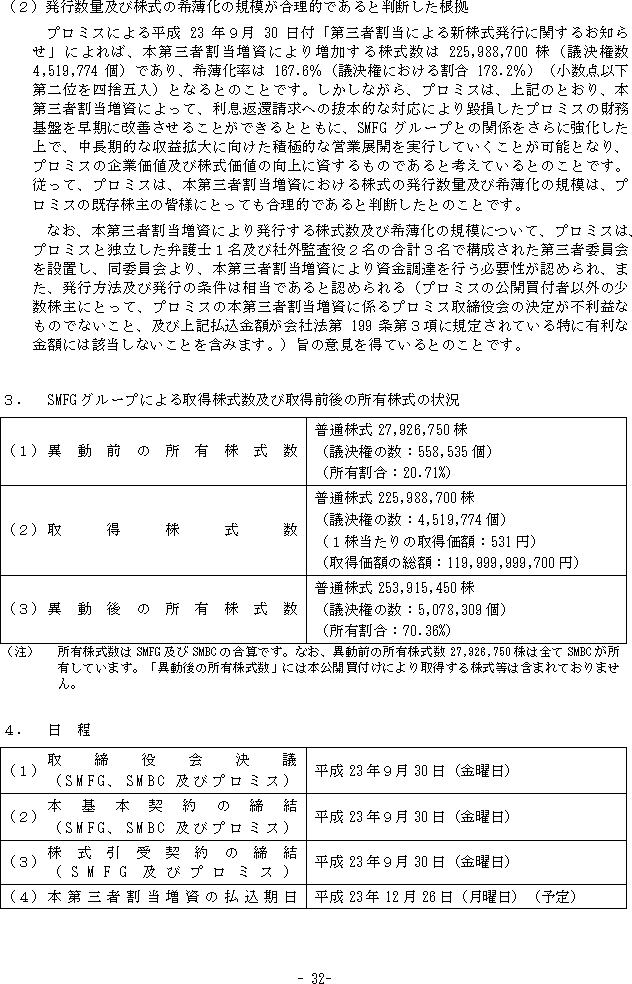 三井住友銀行によるプロミスに対する公開買付けの開始及び三井住友フィナンシャルグループ又は三井住友銀行によるプロミスの第三者割当増資の引受けのお知らせ(32/35)