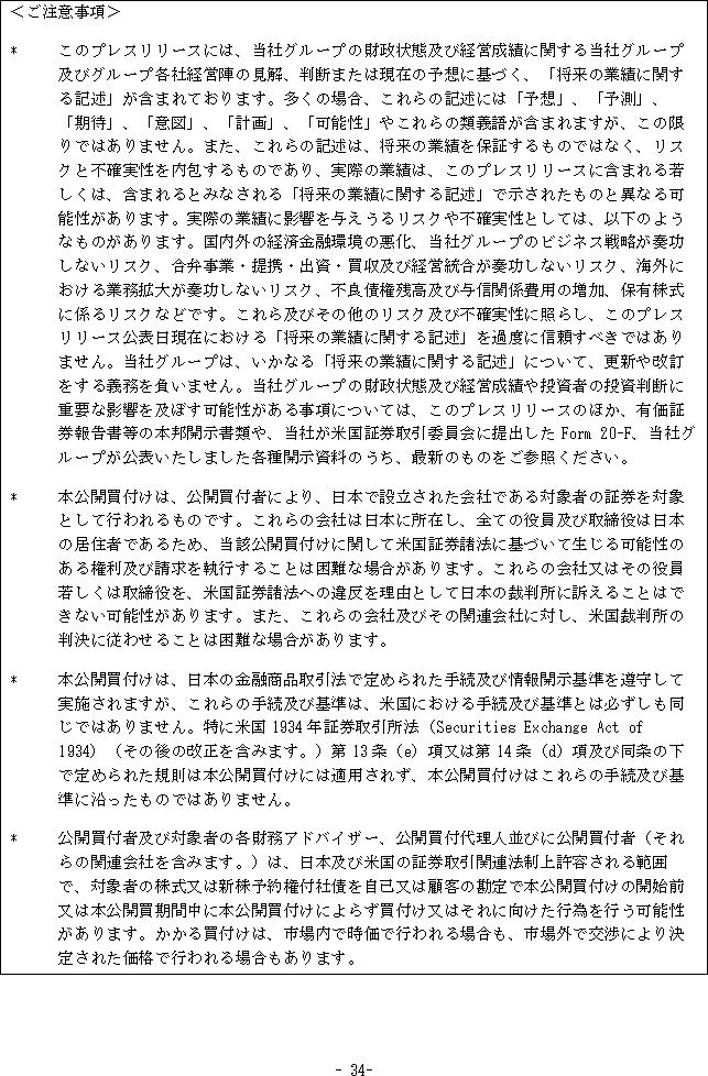 三井住友銀行によるプロミスに対する公開買付けの開始及び三井住友フィナンシャルグループ又は三井住友銀行によるプロミスの第三者割当増資の引受けのお知らせ(34/35)