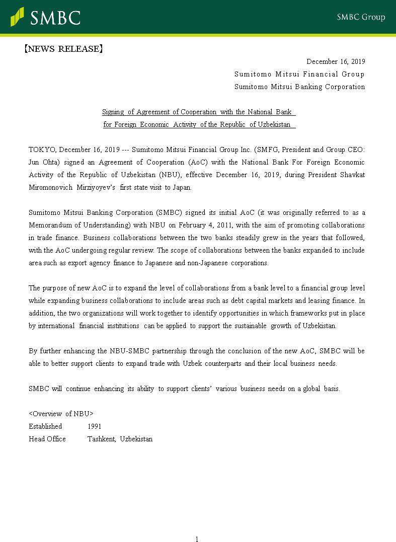 Signing of Agreement of Cooperation with the National Bank for Foreign Economic Activity of the Republic of Uzbekistan(1/1)