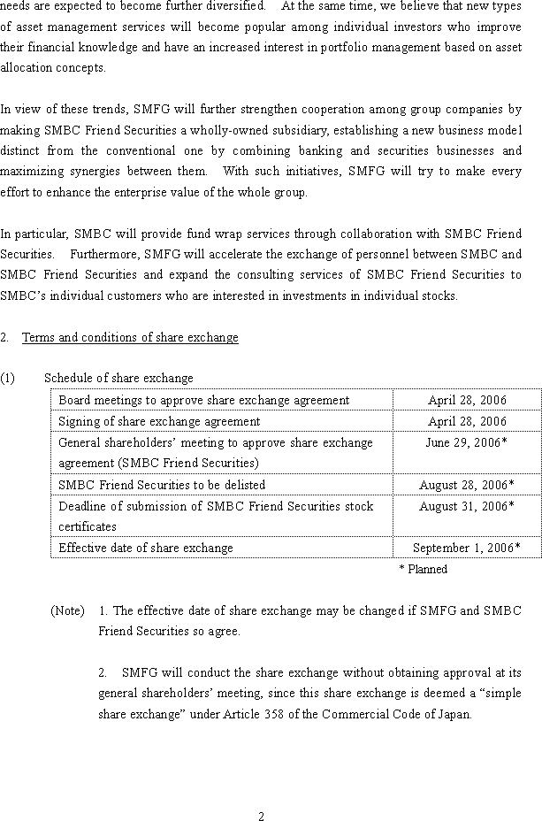 SMFG TOP > News Releases > Notice regarding signing of share exchange agreement for making SMBC Friend Securities into a wholly-owned subsidiary of SMFG(2/6)