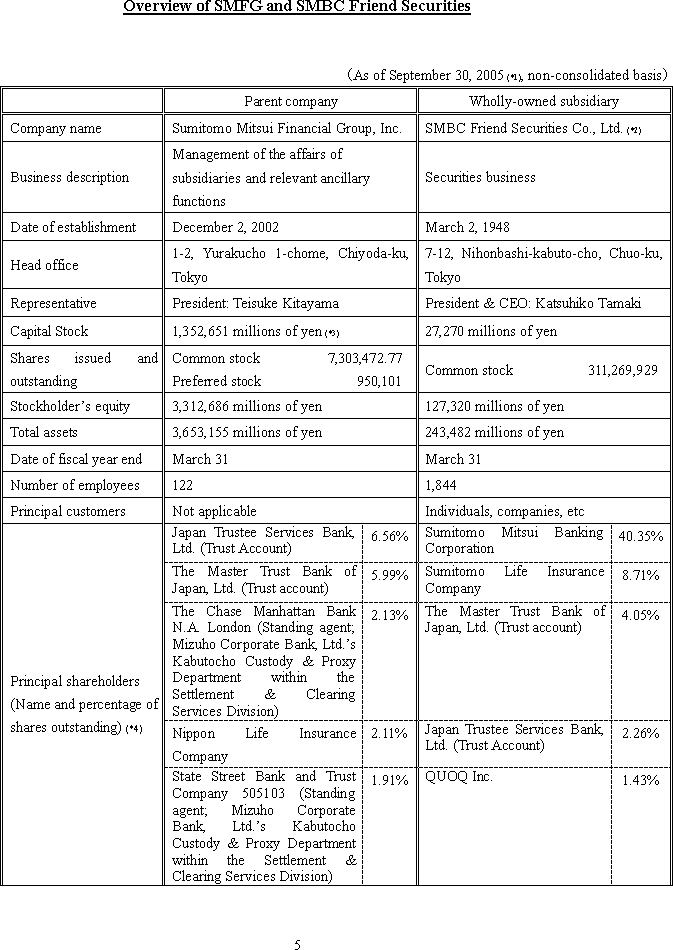 SMFG TOP > News Releases > Notice regarding signing of share exchange agreement for making SMBC Friend Securities into a wholly-owned subsidiary of SMFG(5/6)