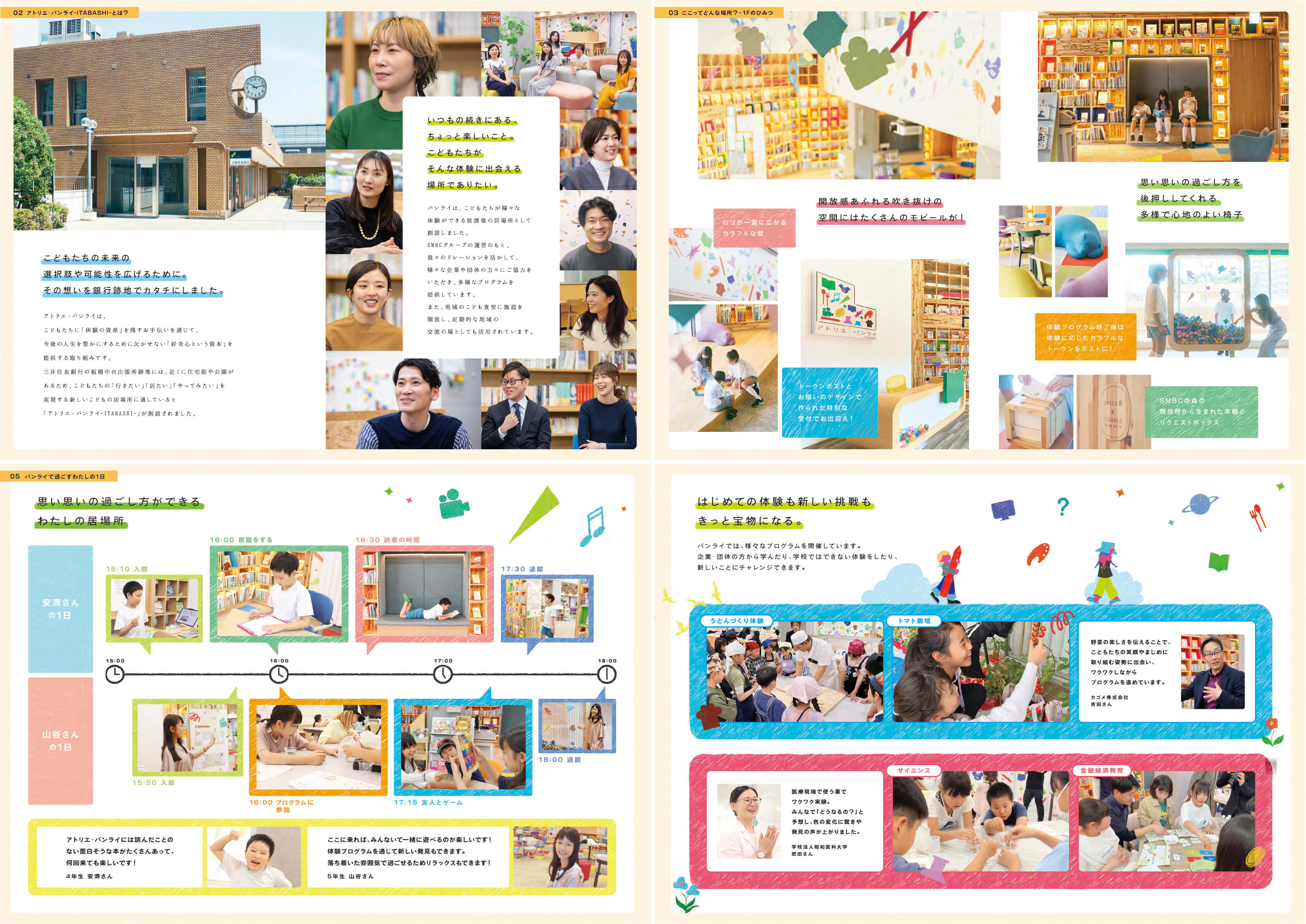 私たちの理念をはじめ、こどもたちが安心して思い思いに過ごせる居場所づくりの工夫や特徴、さらにこどもたちの日々の過ごし方や体験プログラムの様子を写真とともにご紹介しております。