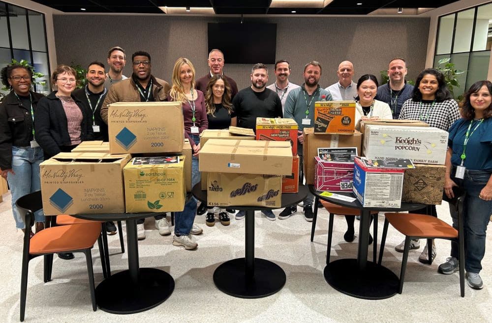 2025年12月1日からの5日間、80名以上の社員が生活用品や食品を持ち寄り、寄贈に向けた準備・仕分けを行いました。